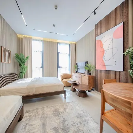 В апартаментах есть оснащённая всем необходимым кухня со всем необходимым. Аэропорт Шарджи располагается в 15 минутах езды. Гости могут расслабиться у бассейна и окунуться в прохладную воду.